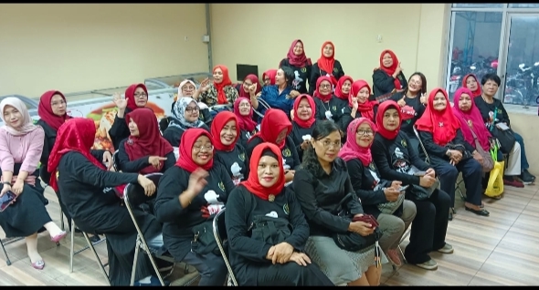 Rombongan IKWI Sumut foto bersama di sela kunjungan ke pabrik makanan sehat siap saji Fiesta di Kawasan Industri Medan (KIM), Kamis (25/4/2024).