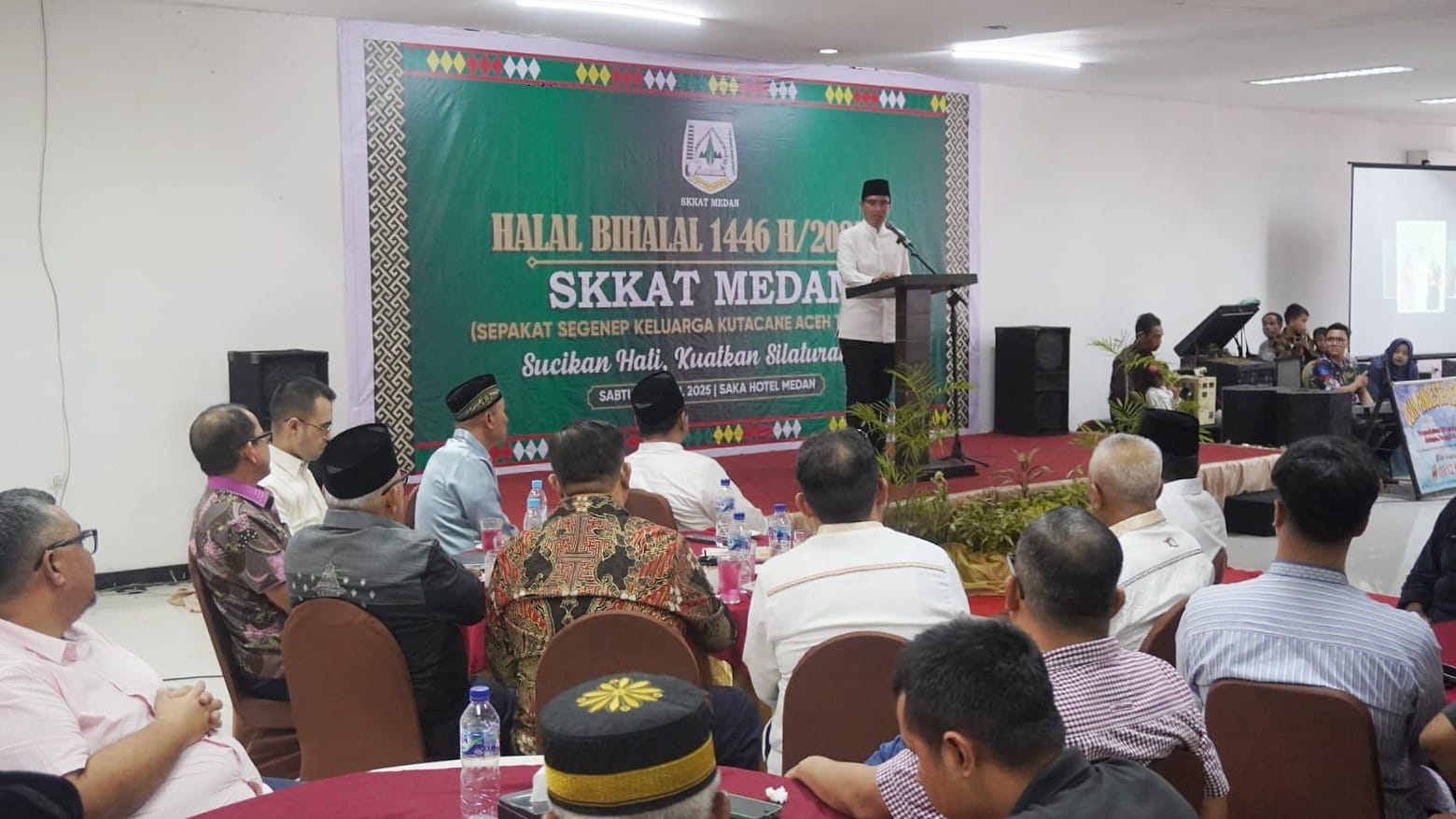 Wali Kota Medan Rico Tri Putra Bayu Waas menghadiri halalbihalal yang digelar Sepakat Segenap Keluarga Kutacane Aceh Tenggara, (SKKAT) Medan di Hotel Saka Jalan Gagak Hitam, Medan Sunggal, Sabtu (19/4/2025).